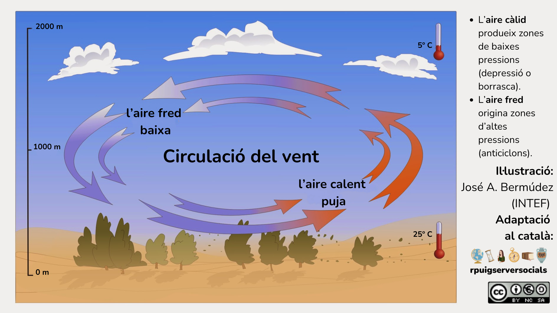 - L’aire càlid produeix zones de baixes pressions (depressió o borrasca).