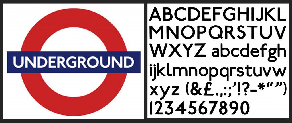 L’anomenada tipografia Johnston va revolucionar les senyalitzacions. Es tracta d’una tipografia sans serifs o de pal sec, de fàcil i ràpida lectura de la qual han derivat en les famílies tipogràfiques més usades avui. Dissenyada el 1916, amb la cobertura de tota la xarxa i instal·lacions del metro londinenc, fou adoptada amb posterioritat per l’empresa de transports públics. En poc temps, la Johnston ja formava part de la «identitat visual» de la ciutat, fins a convertir-se en un dels símbols més coneguts en el món i la marca genèrica del transport públic londinenc.