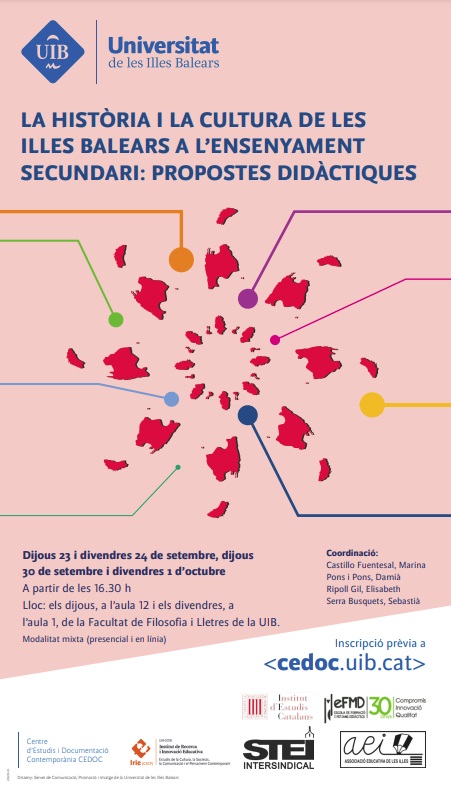 Aquests darrers dies de setembre, ha tengut lloc de mera presencial i en línia el curs La història i la cultura de les illes Balears a l’ensenyament secundari: propostes didàctiques, en què nombrosos professionals que treballen en els centres educatius pogueren exposar, de primera mà, les respectives experiències docents i millorar l’ensenyament de la història i cultura de les balears a les aules de secundària.