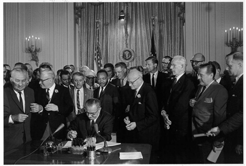 L’11 d’abril de 1968, el president Lyndon B. Johnson va signar la Llei de Drets Civils de 1968, també coneguda com a Llei d’Habitatge Just, un moment crucial en la lluita pels drets civils als Estats Units. Aquesta legislació històrica va prohibir la discriminació en la venda, lloguer i finançament d’habitatges per motius de raça, religió, origen nacional i sexe.