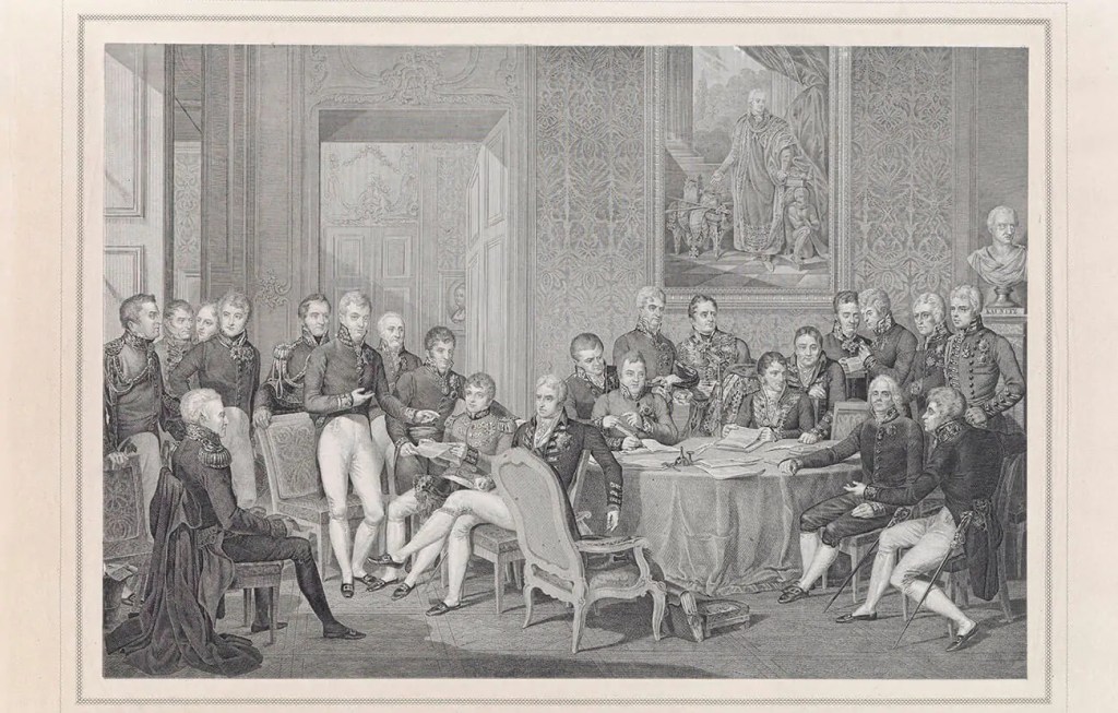 Imagineu-vos l’escena: les llums dels canelobres reflectint-se en els uniformes brodats i els vestits sumptuosos, el murmuri constant de diplomàtics i consellers, i la tensió palpable en l’aire. Després de la tempesta napoleònica que havia sacsejat els fonaments de l’Antic Règim, era hora de recollir els fragments i construir un nou ordre.