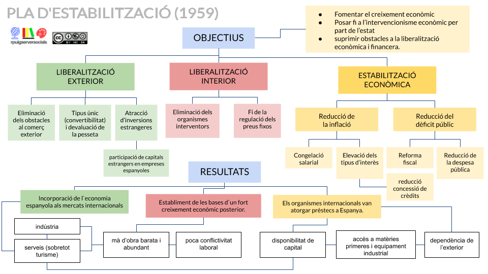 Els nous ministres, Ullastres i Navarro Rubio, van elaborar un Pla d’Estabilització Econòmica, que consideraven imprescindible per a assentar sobre una base sòlida el procés de creixement econòmic que es volia iniciar. Per a posar en marxa el Pla va caldre vèncer moltes reticències, fins i tot, les de Franco i Carrero Blanco, però no hi havia una altra recepta per a treure a Espanya del marasme econòmic. Finalment, el Pla d’Estabilització va rebre l’aprovació del govern mitjançant un Decret datat el 21 de juliol de 1959.