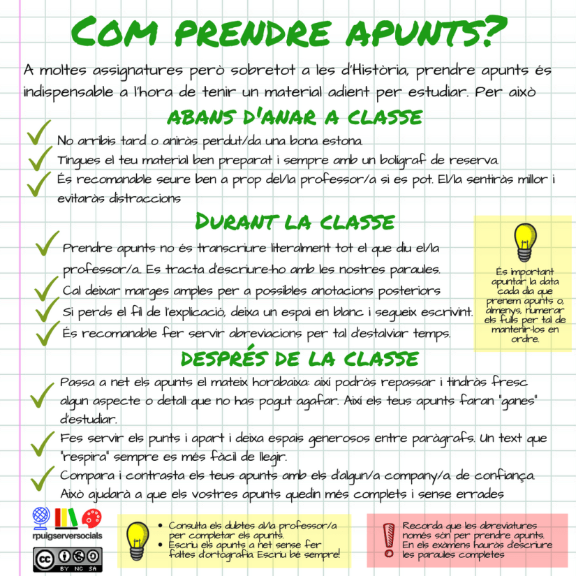 A continuació, us pos a l’abast un conjunt d’infografies que he elaborat amb l’objectiu que els meus alumnes puguin aprendre alguns procediments de tècniques d’estudi.
