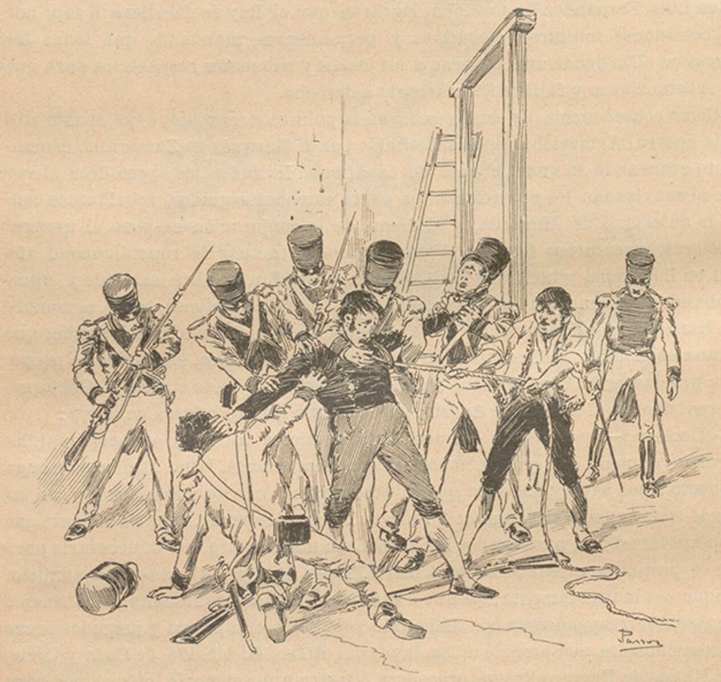Després de tota una sèrie de pronunciaments liberals fracassats, l’1 de gener de 1820, el coronel Rafael de Riego al capdavant de les tropes a punt de ser embarcades per lluitar contra l’emancipació de les colònies americanes, va fer un pronunciament militar a Cabezas de San Juan (Sevilla), que va triomfar. Davant la passivitat de les autoritats, el pronunciament liberal va ser secundat a diverses ciutats, unint-se l’exèrcit espanyol. Per protegir la Constitució i fer front a l’oposició absolutista, es va organitzar la Milícia Nacional, un cos de voluntaris liberals armats.