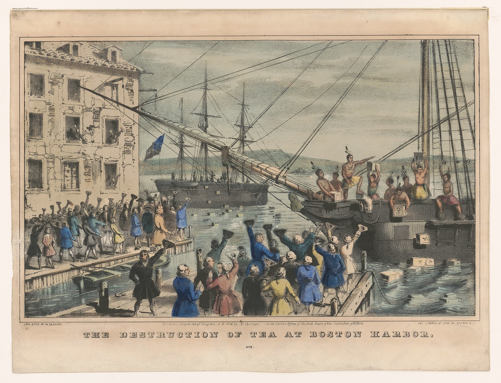 En resposta a aquesta pretensió, el desembre de 1773, els colons varen decidir atacar els vaixells anglesos carregats de te que estaven ancorats al port de Boston en el conegut com a motí del te de Boston, quan uns joves disfressats d’indis van llançar al mar els carregaments de te de la Companyia. Com a resposta, el rei Jordi III va enviar l’exèrcit a sufocar la rebel·lió, es va bloquejar el port de la ciutat, es varen suprimir tots els drets a la regió de Massachusetts i varen imposar una elevada multa a tots els seus habitants.