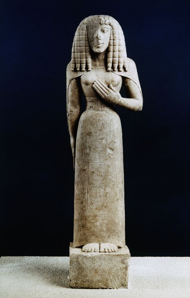 - Posteriorment aquestes escultures evolucionen allunyant-se de la influència d’Orient i apropant-se més al naturalisme de les figures. En aquesta etapa s’avança en la recerca de la perfecció anatòmica però la codificació de les figures marca l’etapa.