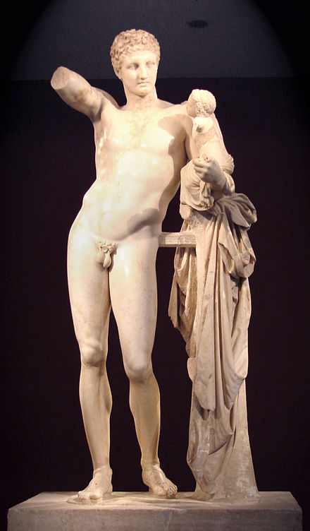 - Evolució del moviment. Utilització de la corba praxiteliana, en aquesta la figura es recolza en una cama i l’altre queda flexionada produint un desnivell de malucs i una línia compositiva molt marcada en forma de s invertida..
