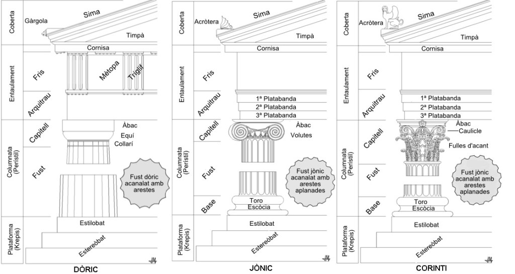 | Element | Ordre Dòric | Ordre Jònic | Ordre Corinti |