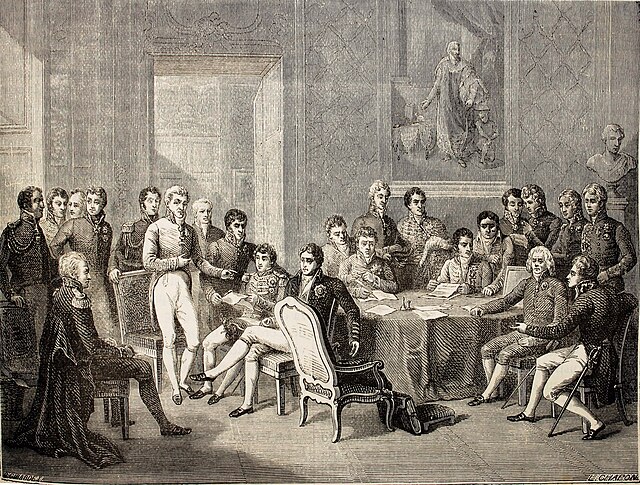 - El Congrés d’Aquisgrà (1818) per a la retirada de les tropes de territori francès i la inclusió de França a la Santa Aliança.