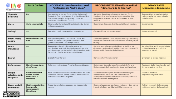 També pots descarregar-te el pdf amb la informació de les forces poliítiques durant la Restauració borbònica.