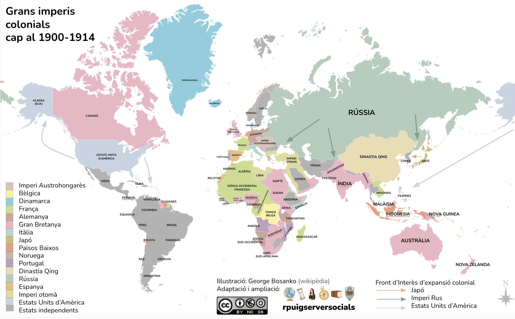 A aquesta època l’anomenem històricament l‘Imperialisme, que definim com el domini o influència i expansió d’un país (la metròpolis) sobre altres territoris que queden sotmesos (les colònies), formant una unitat (els imperis colonials) per mitjà de la força militar, econòmica, cultural i/o política.