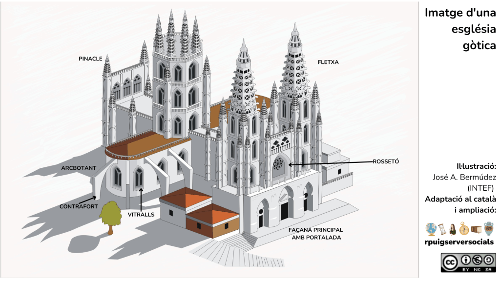 Pinacles i fletxes com a decoracions exteriors i acabaments finals que amplien la sensació d’alçada de les construccions gòtiques.