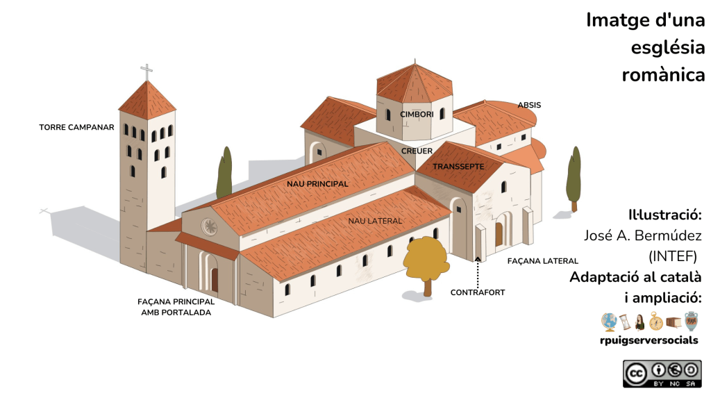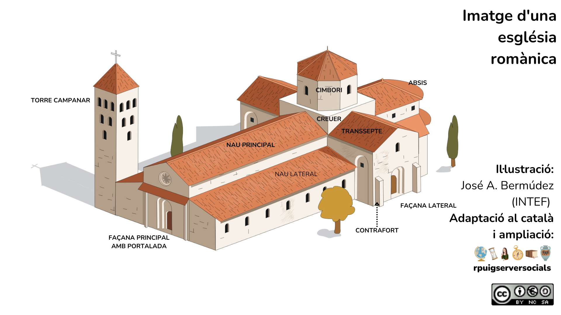 - Poder de l’Església en una societat teocèntrica com és la medieval, l’església s’entén com a entitat cultural i intel·lectual que controlava el poder i la cultura a través dels monestirs i les escoles catedralícies. A causa d’aquest fet la societat fou homogènia i marcada per la religiositat. Des de Roma, la seu papal, es va iniciar una reforma —Reforma Gregoriana— per enfortir la moral del clergat, fou aquest fet juntament amb d’altres els que van generar nous edificis per al culte.