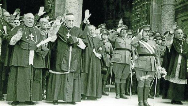 L’Església catòlica, que va recuperar la preeminència social i que va nodrir d’ideologia el nou Estat (nacionalcatolicisme). Es va establir la confessionalitat de l’Estat i el pressupost de culte i clero, i un concordat (1953) li va atorgar nombrosos privilegis. Així mateix, es va suprimir el divorci i es va reimplantar l’ensenyament religiós. A finals dels anys 50 figures destacades de l’Opus Dei van aconseguir altes responsabilitats en el règim, els coneguts com a tecnòcrates, per la seva tasca dins del règim més orientada cap a l’eficiència tècnica i administrativa que a qüestions ideològiques.