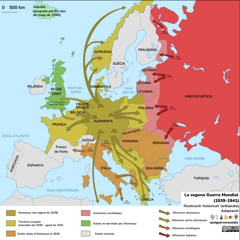 A continuació, abordarem les victòries de l’Eix, fent referència als triomfs entre els anys 1939 i 1941.