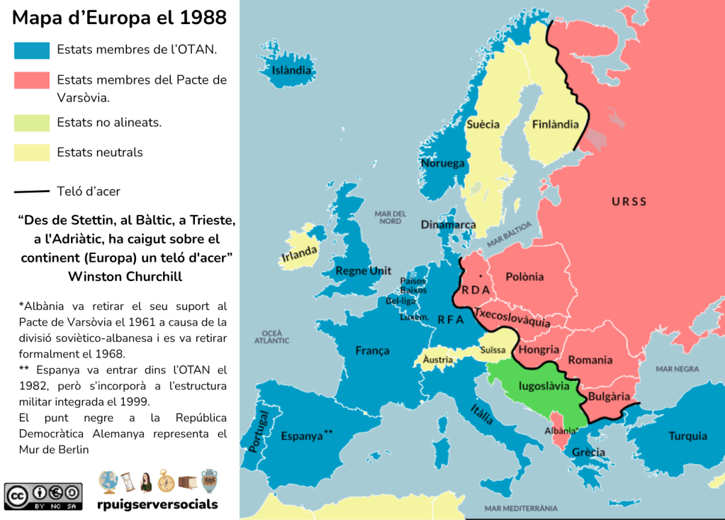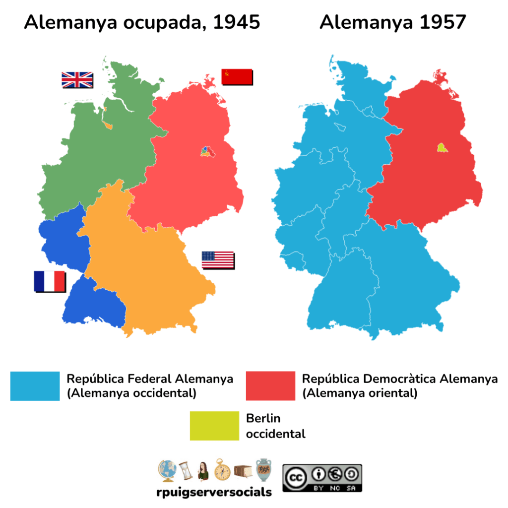 El lloc més conflictiu entre tots dos bàndols a Europa va ser Alemanya, que quedaria dividida en dos països (RDA i RFA) i la capital dels quals, Berlín, es convertiria en el símbol de l’enfrontament entre les dues ideologies.