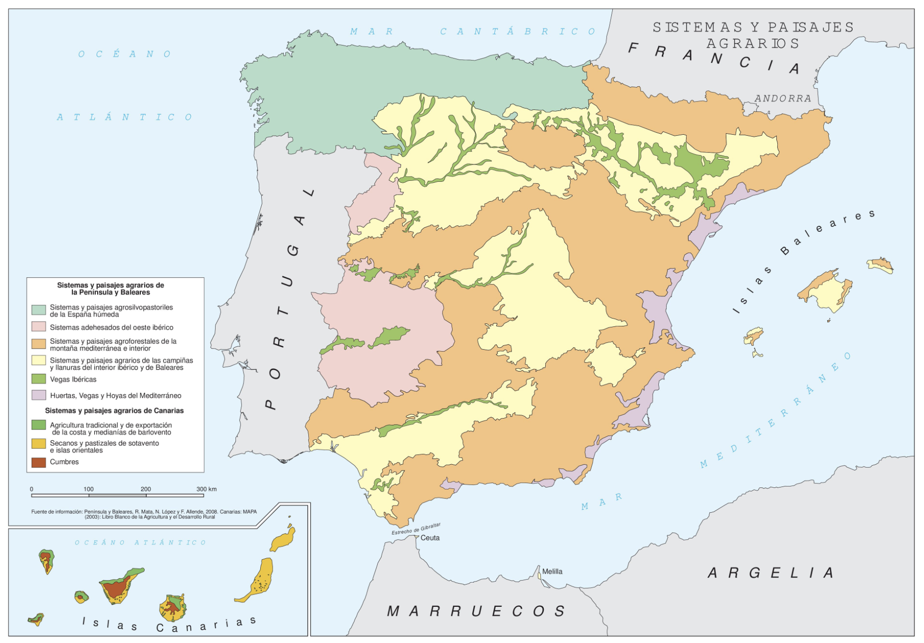 La localització de la Península Ibèrica determina el clima que, combinat amb l’elevada altitud mitjana del territori, porta al predomini dels cultius extensius de secà i grans àrees de pastures favorables per a la ramaderia extensiva.