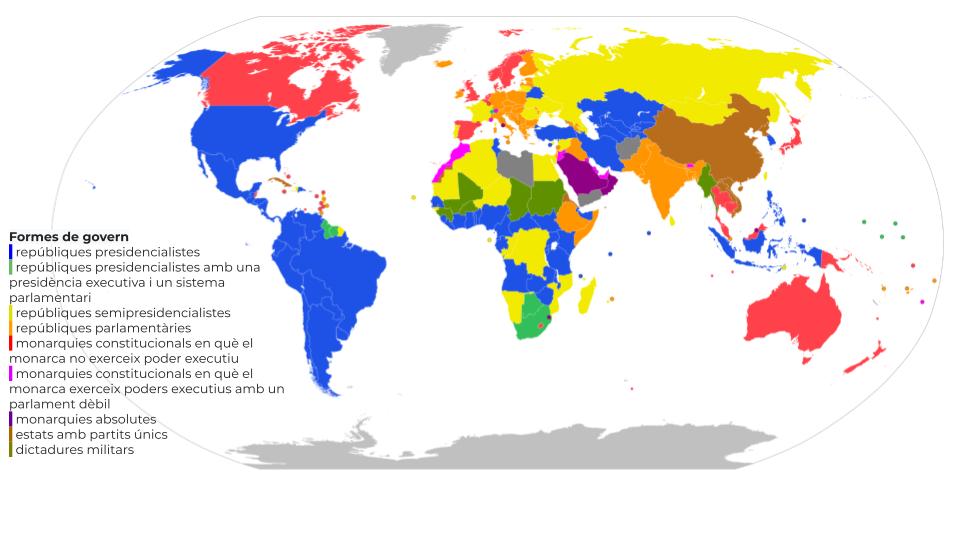 - Monarquies i repúbliques. A les monarquies parlamentàries, la màxima autoritat és el Rei, però la sobirania la té el poble. A les repúbliques parlamentàries, les funcions de cap d’Estat les exerceix el president de la República.