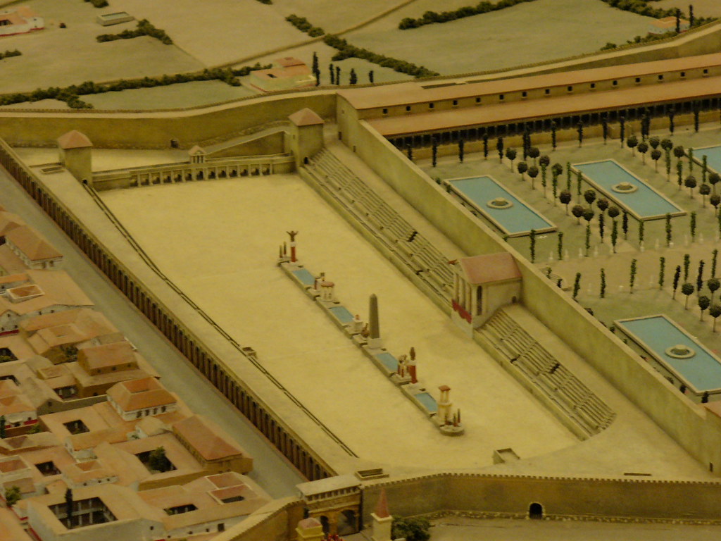 CIRC: En l’Antiga Roma, era el lloc de les carreres de cavalls, dels espectacles d’acrobàcia, jocs d’animals, exercicis atlètics. De forma allargada acabada en semicercle a un extrem. Té graderia per al públic i tribuna presidencial a un dels costats majors.