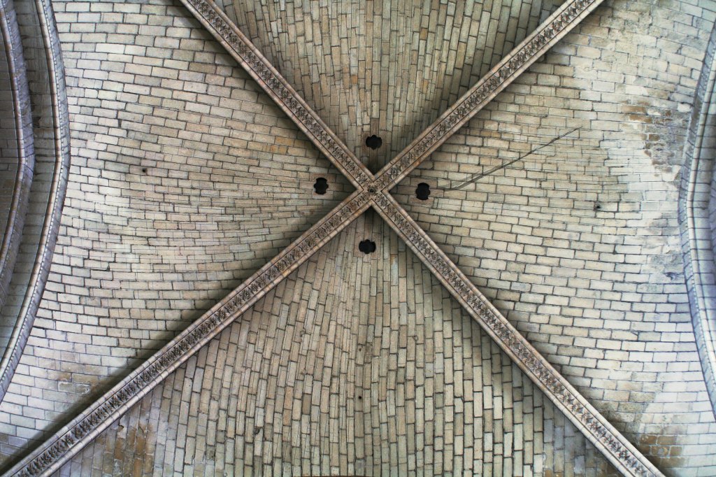 PLEMENTERIA: Coberta de la volta gòtica. Cadascun dels panys de carreus de pedra que omplen els espais que queden entre els arcs d’una volta de creueria.