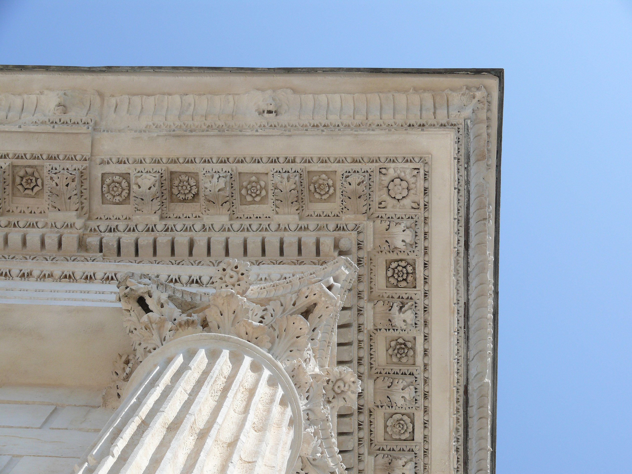 ARQUITRAU: Peça de pedra en forma de paral·lelipípede, que forma la part inferior de l’entaulament, que descansa directament sobre el capitell d’una columna i cobreix l’espai de columna a columna.