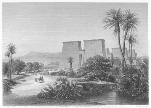 PILÓ: Construcció massissa, de quatre costats i fent talús, amb una porta central, que servia d’entrada monumental als temples egipcis.