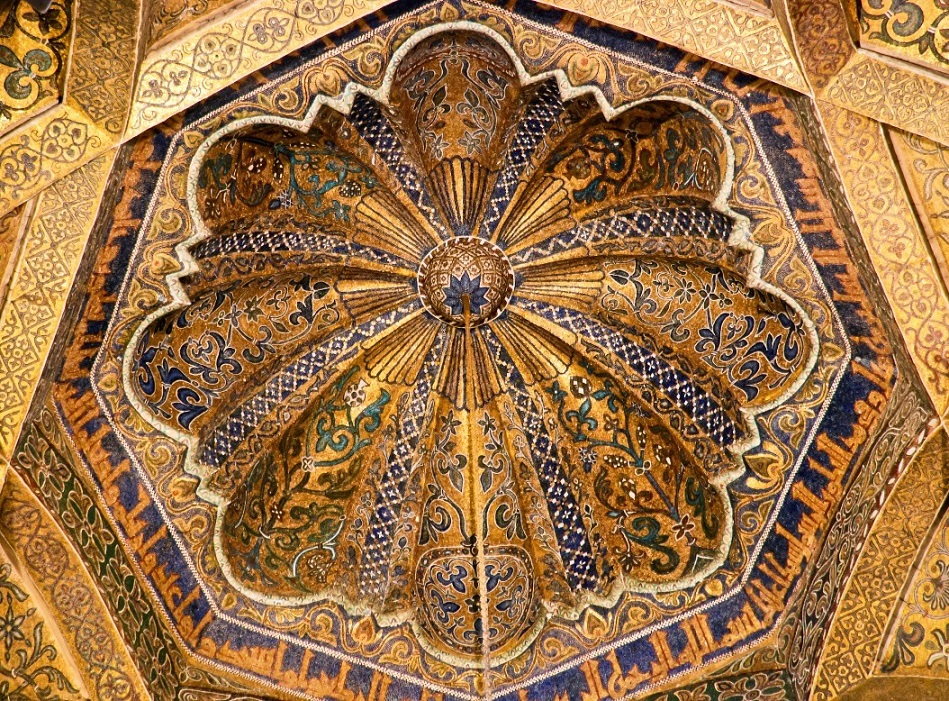 ARABESC: Ornament superficial que forma un entrellaçat de fulles, flors o formes geomètriques i que és usat profusament en l’art islàmic.