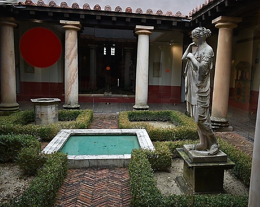 COMPLUVIUM: Teulada de la domus romana amb la inclinació cap a dins, cap a l’atri, per abocar l’aigua de la pluja a l’impluvium.
