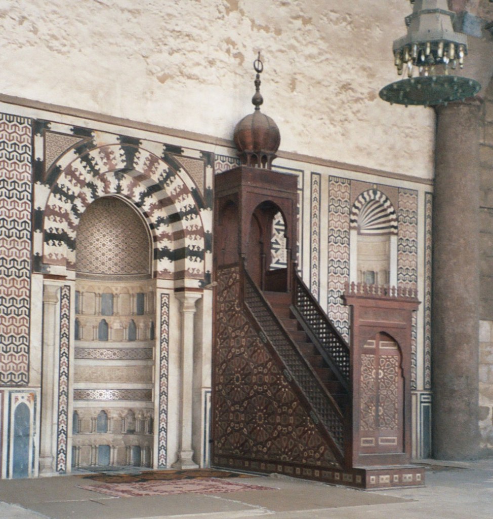 MINBAR: Espècie d’altar situat davant el mihrab de la mesquita musulmana des d’on es llegeix l’Alcorà.