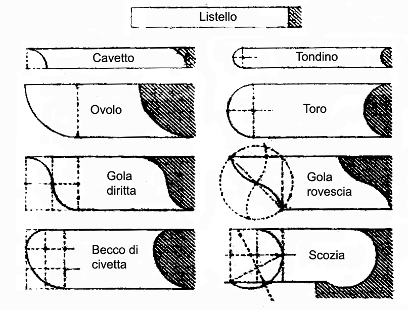 ESCÒCIA: Motllura còncava, el perfil de la qual el formen dos segments de circumferència de radi diferent, que decora la base d’una columna.