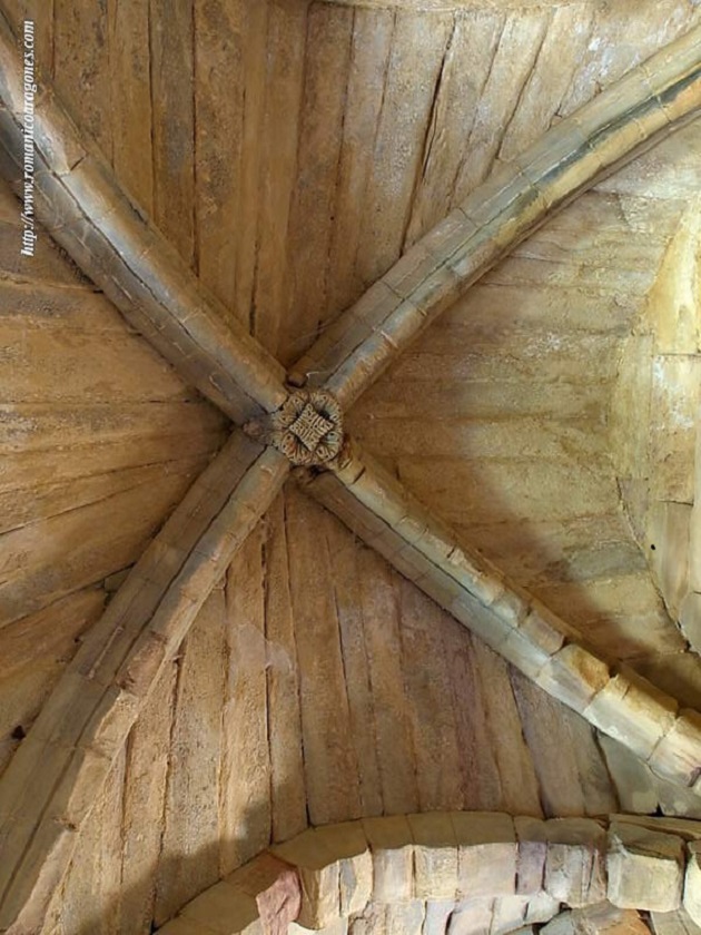 VOLTA D’ARESTA: Estructura arquitectònica corbada que cobreix un espai quadrat i està formada per la intersecció de dues voltes de canó. Típica del Romànic és molt feixuga i requereix murs gruixats i contraforts.