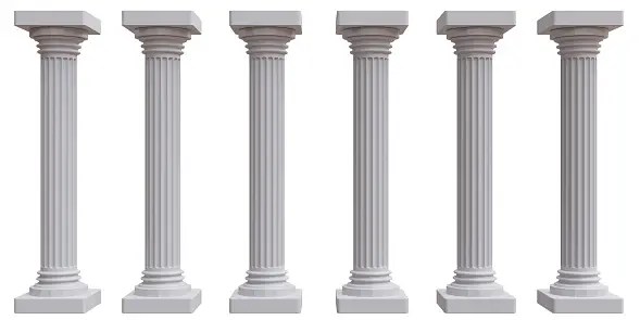COLUMNA: Element arquitectònic vertical de secció circular que serveix per a sostenir el pes de l’estructura, si bé també pot tenir funció decorativa o commemorativa. La columna està comunament formada per tres elements: base, fust i capitell.