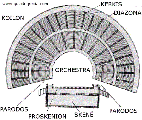 ORQUESTRA: Lloc del teatre grec o romà destinat al cor. De planta circular o ultrasemicircular a Grècia i de planta semicircular a Roma, ja que el cor té poca importància per als romans.